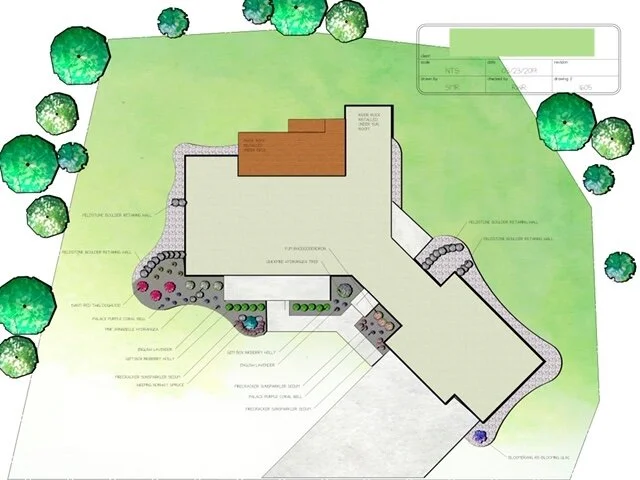 • Hardscape layout planning (patios, walkways, retaining walls)